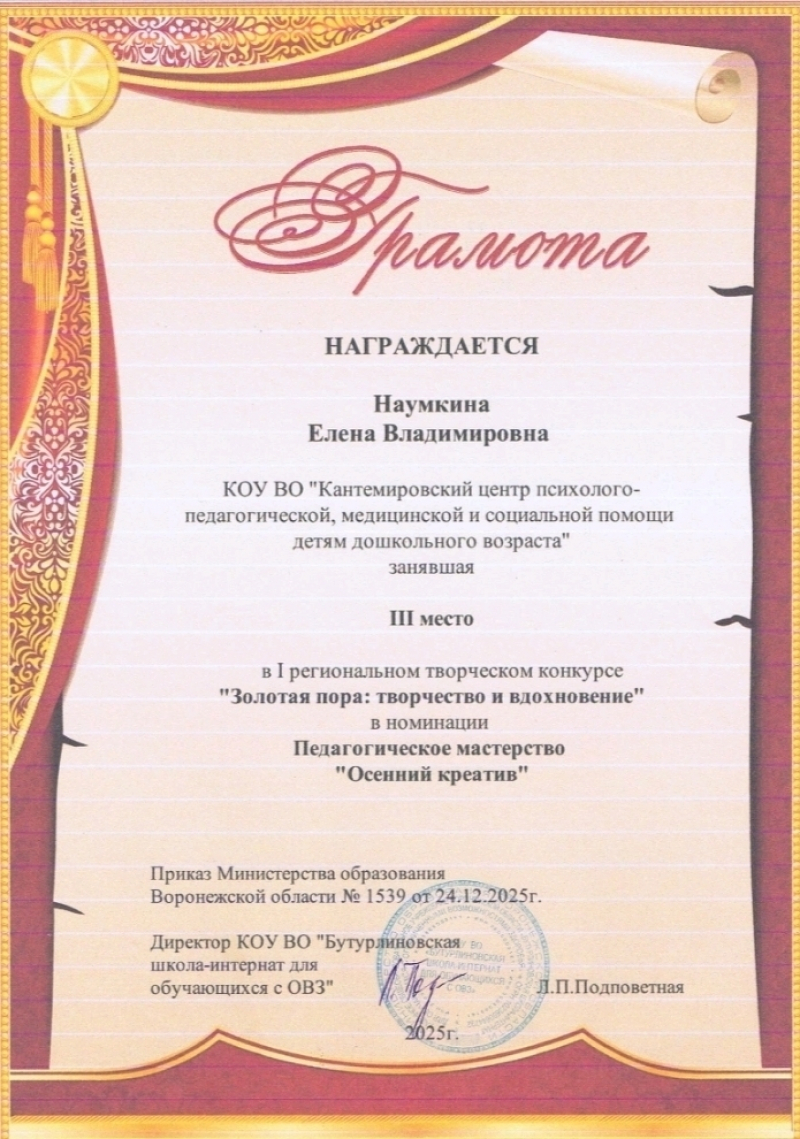 1 региональный творческий конкурс «Золотая пора: творчество и вдохновение» Номинация: Педагогическое мастерство «Осенний креатив»